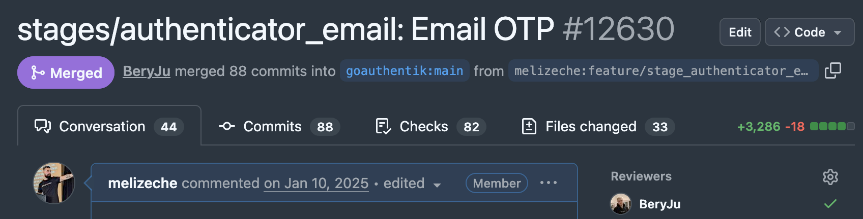 El Email Authenticator Stage, un sistema completo de autenticación multifactor por correo electrónico, fue mi tarea de ingreso. El issue llevaba abierto desde 2022 y era una funcionalidad muy solicitada: no todos los usuarios tienen acceso a apps de TOTP o a llaves de seguridad, y el email es una alternativa accesible que muchas organizaciones necesitan.